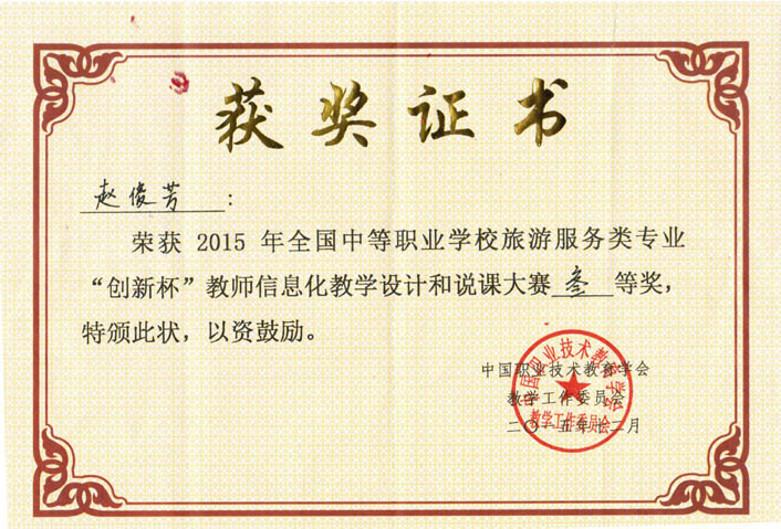 国赛三等奖证书 赵俊芳