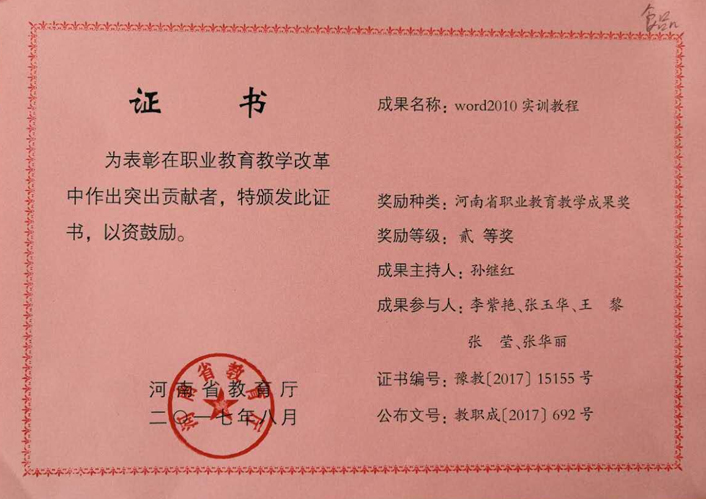 河南省教育厅关于公布2017年度河南省中等职业学校优质课教学评选获奖名单的通知