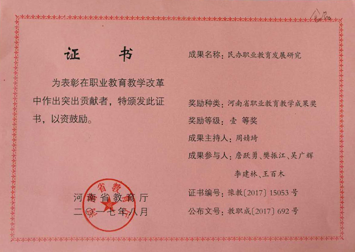 河南省教育厅关于公布2017年度河南省中等职业学校优质课教学评选获奖名单的通知