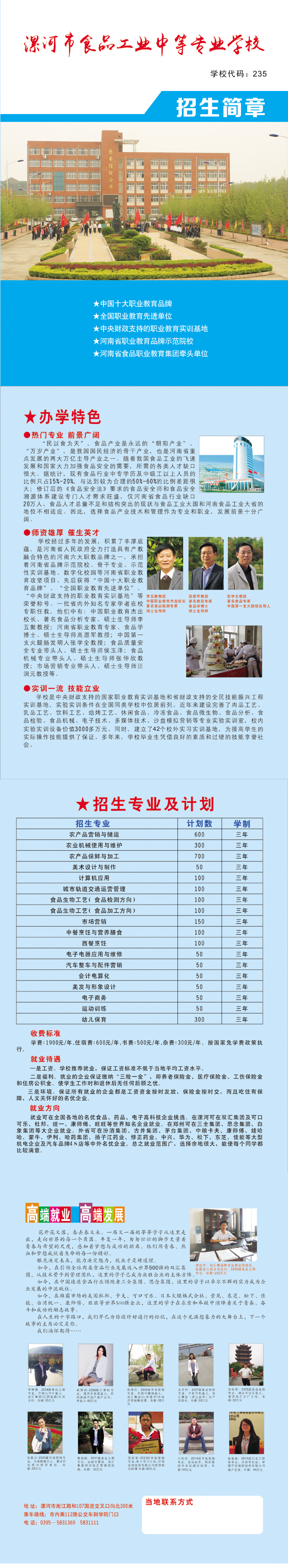 漯河市食品工业中等专业学校2020年招生简章